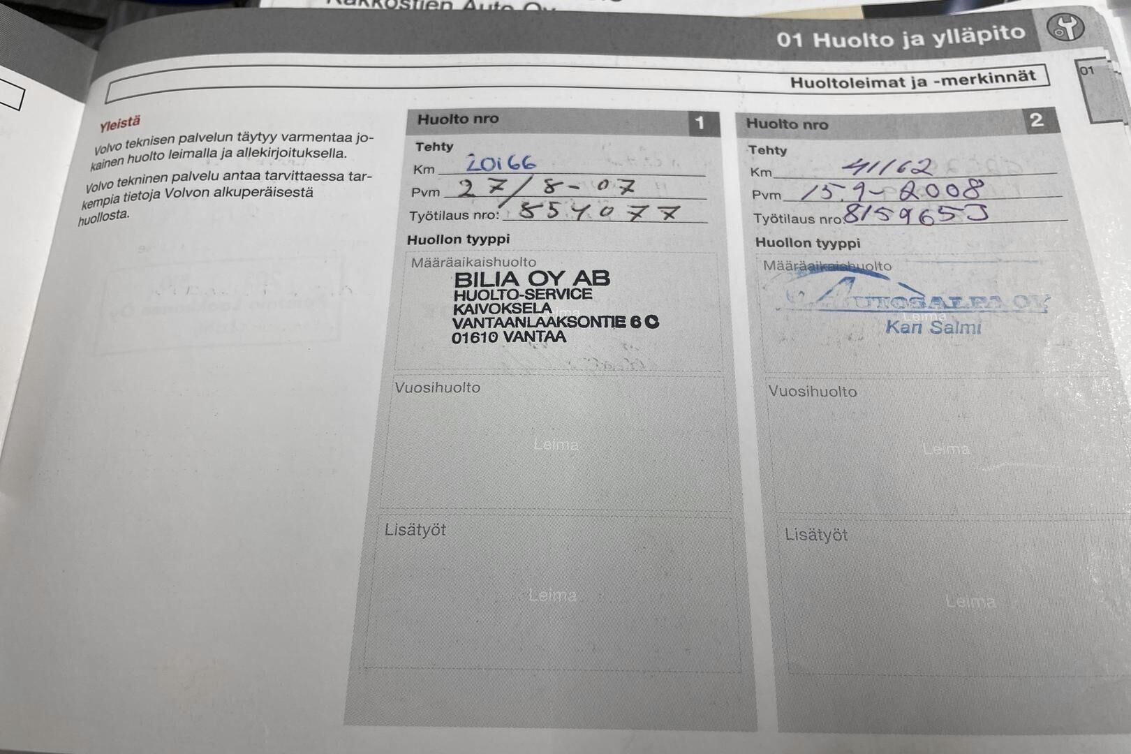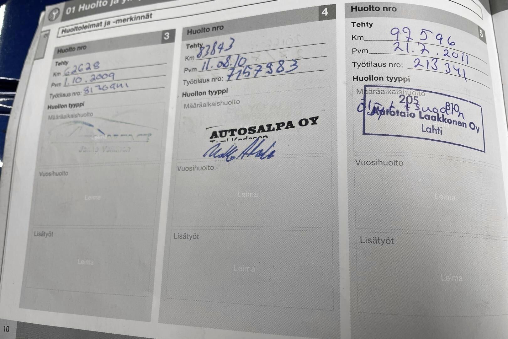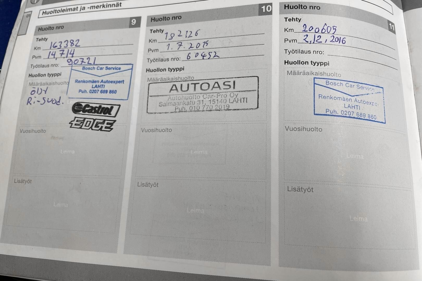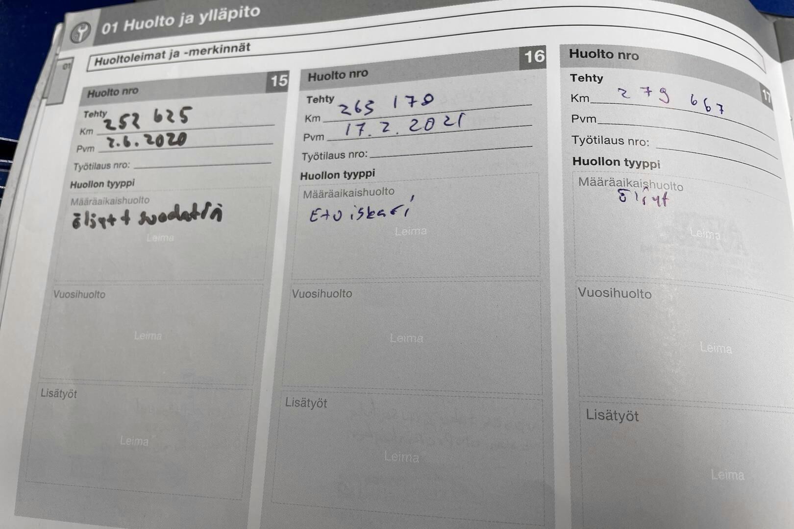 Viimeisin huolto tehty: 330112km