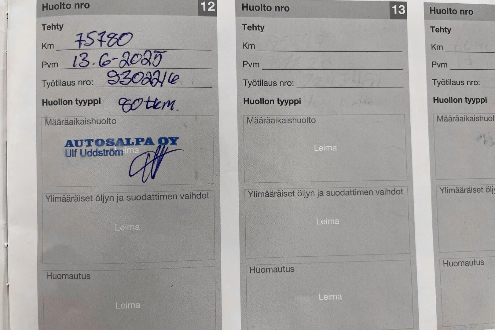Viimeisin huolto tehty 6/2025, 75780tkm