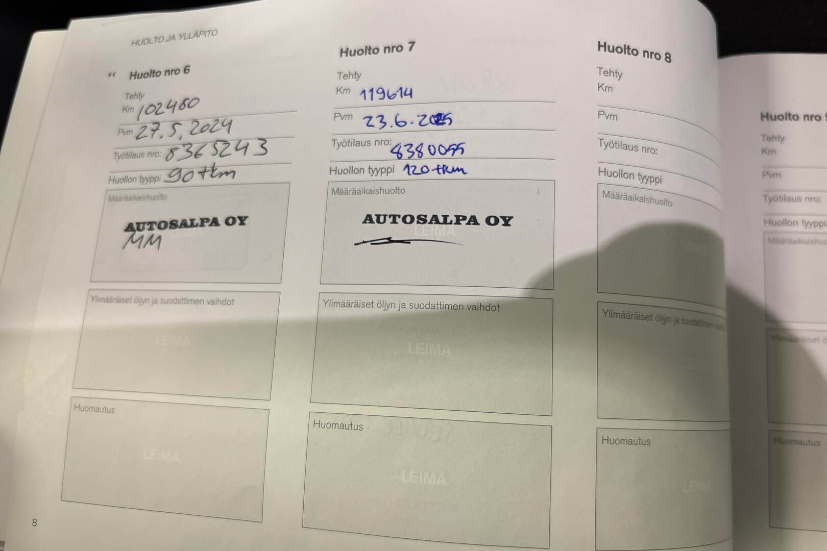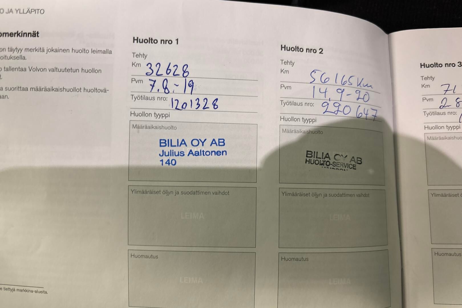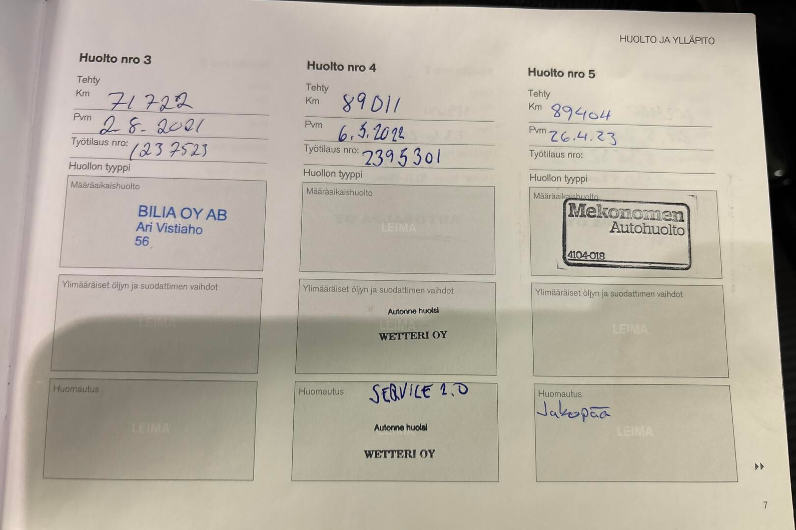 Viimeisin huolto tehty XX/20XX, XXXtkm