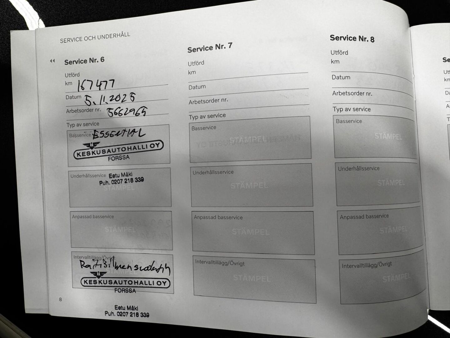 Viimeisin huolto tehty 5.11.2025 167/477km