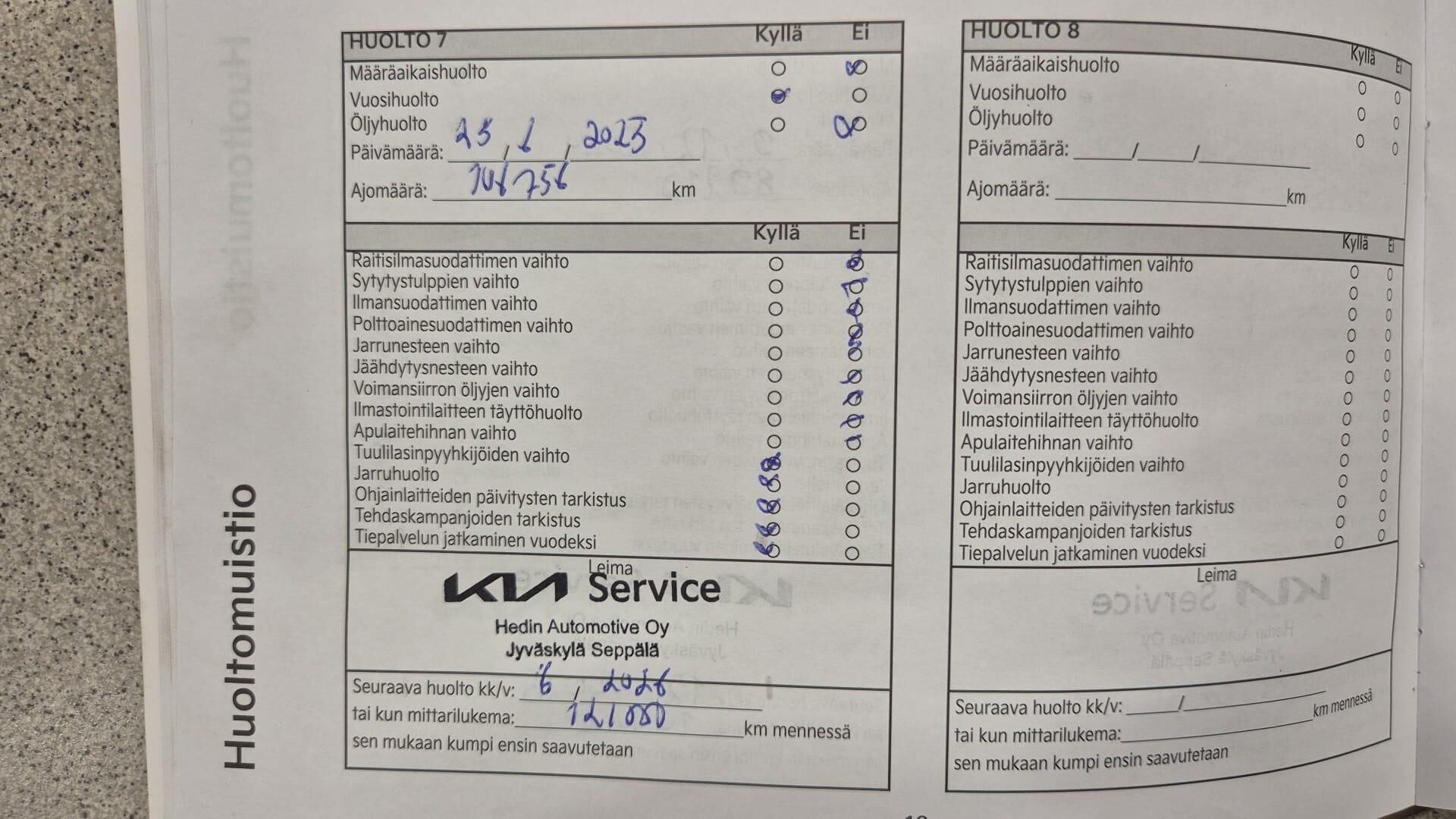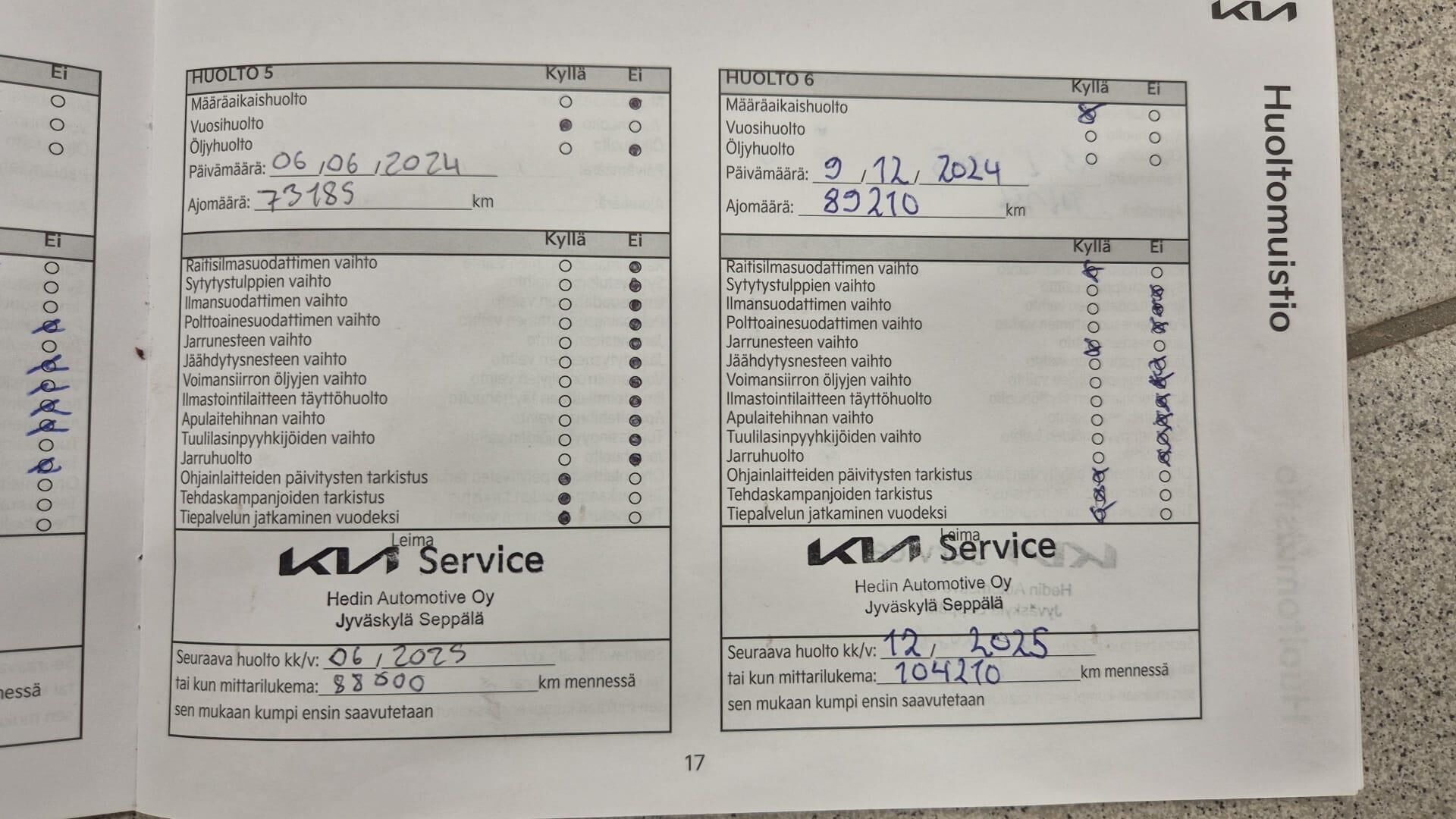 Viimeisin huolto tehty 06/2025