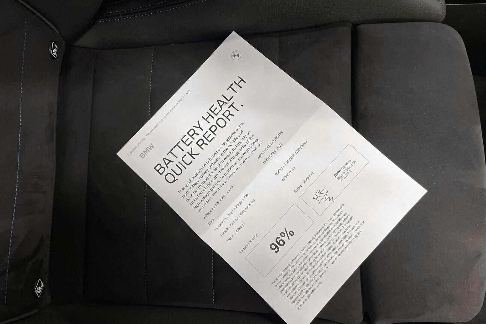 BMW Battery Health Report 96% - lisätietoja akkutestistä saat myyjältä