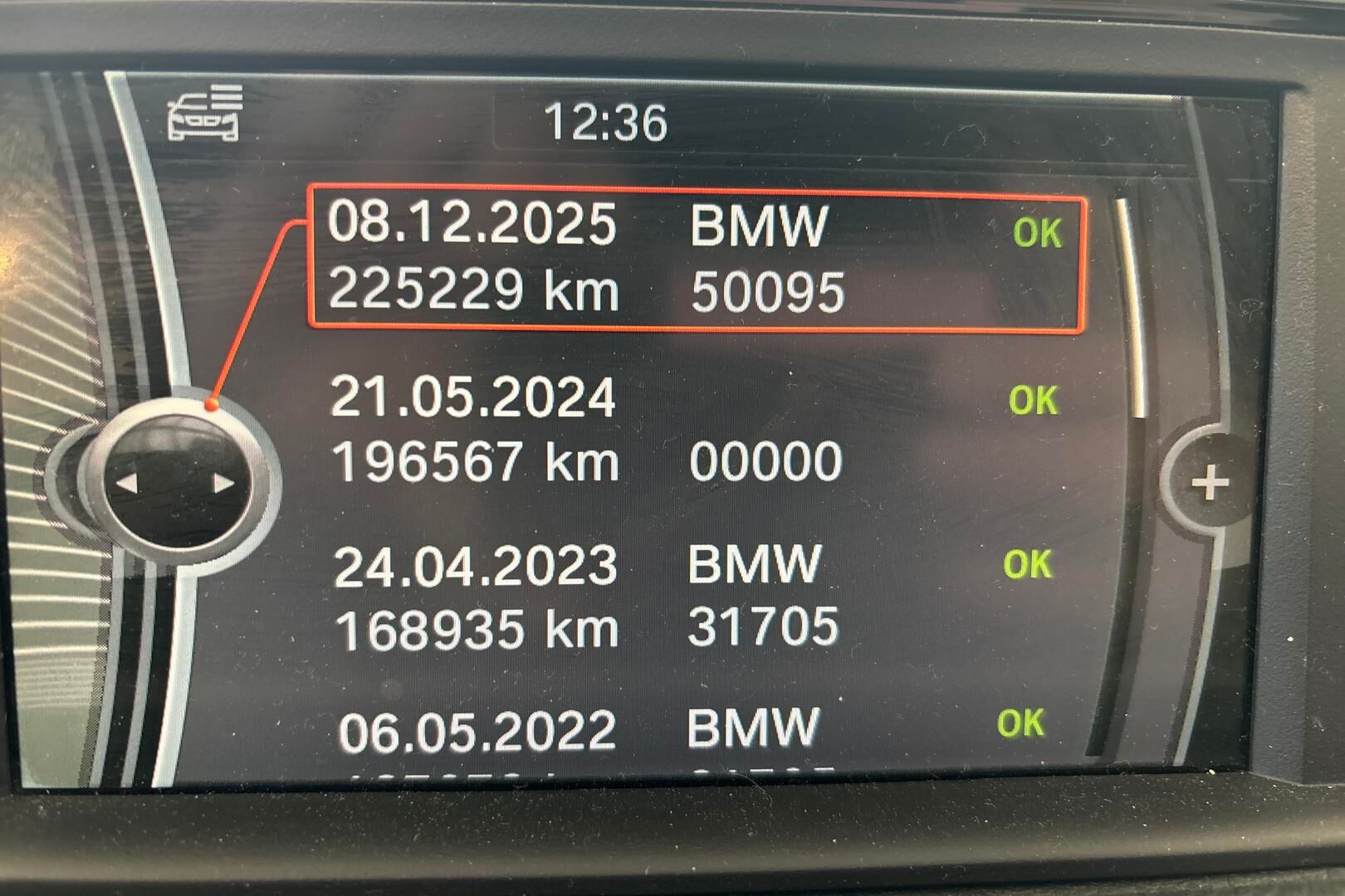 Viimeisin huolto tehty 225 tkm kohdalla 12/2025