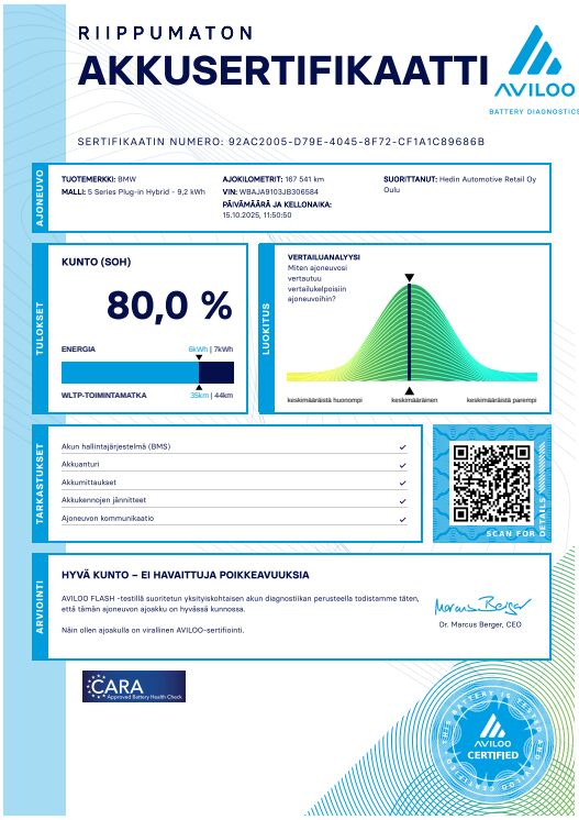 Tämä auto on lataushybridi (PHEV). Ilmoituksen päästö- ja kulutustiedot sekä sähköinen toimintamatka ovat valmistajan ilmoittamia. Todellinen kulutus ja toimintamatka saattavat poiketa ilmoitetusta johtuen auton iästä, ulkoisista tekijöistä ja käyttäjän ajotavasta.