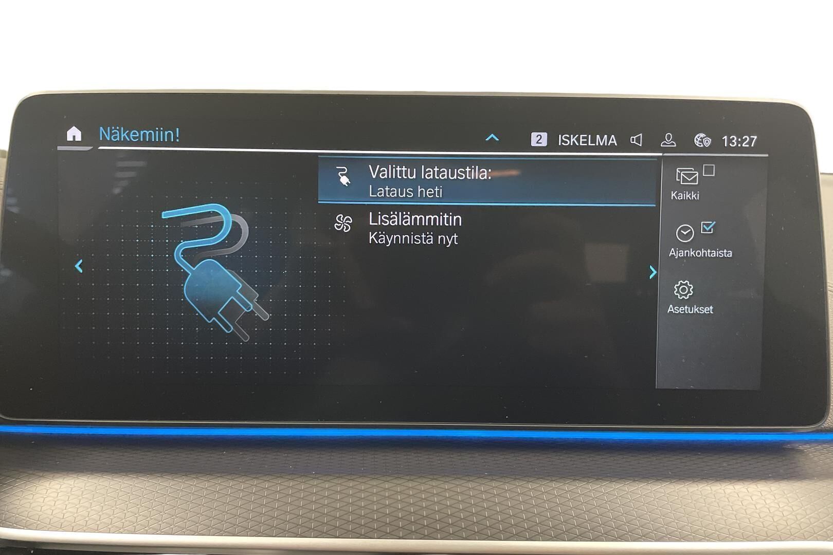 Lue lisää lataushybridin lataamisestaTodellinen kulutus, latausaika ja toimintamatka saattavat poiketa ilmoitetusta johtuen auton iästä, ulkoisista tekijöistä kuten säätilasta ja käytettävästä latauslaitteesta sekä käyttäjän ajotavasta.