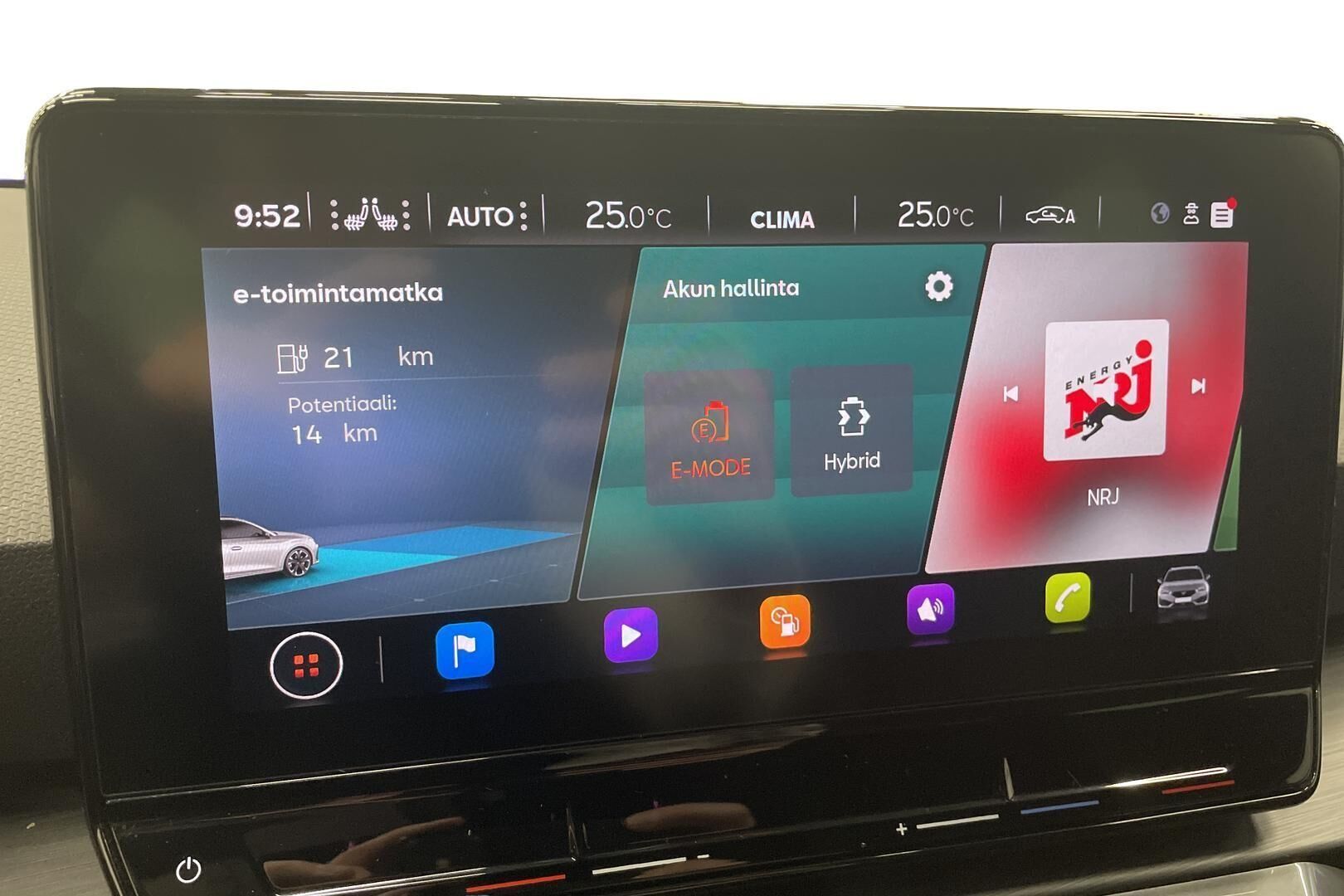 Tämä auto on lataushybridi (PHEV). Ilmoituksen päästö- ja kulutustiedot sekä sähköinen toimintamatka ovat valmistajan ilmoittamia. Todellinen kulutus ja toimintamatka saattavat poiketa ilmoitetusta johtuen auton iästä, ulkoisista tekijöistä ja käyttäjän ajotavasta.