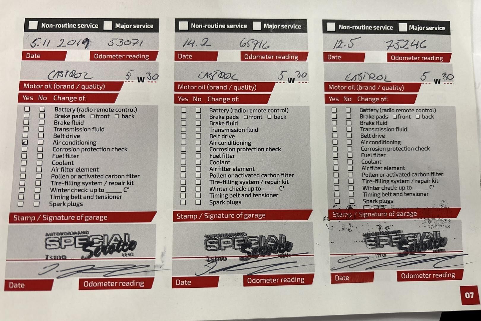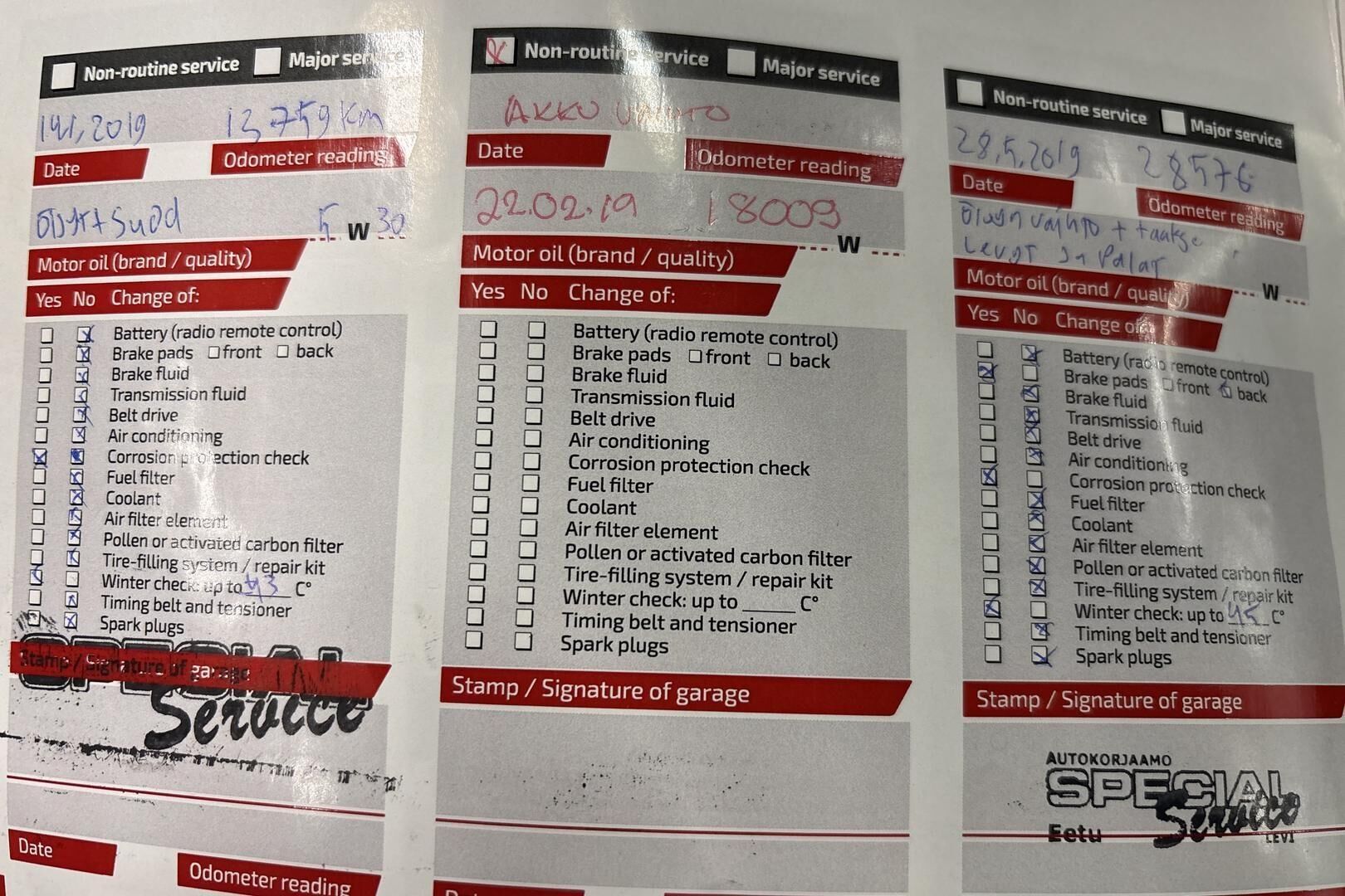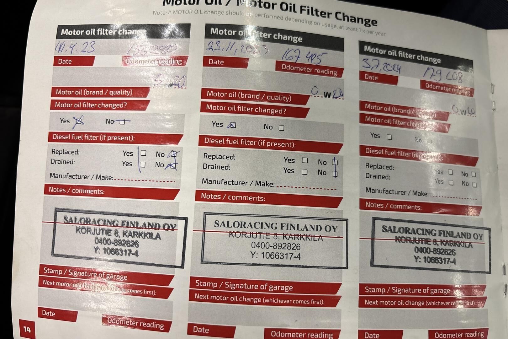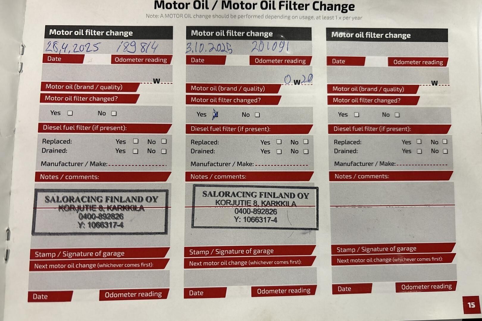 Viimeisin huolto tehty 201 tkm kohdalla 10/25