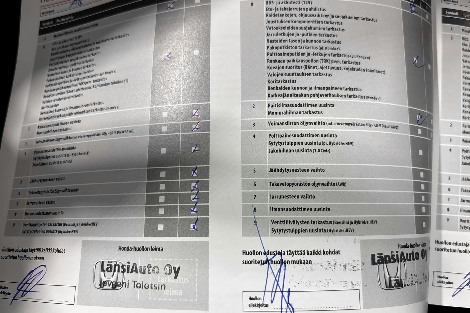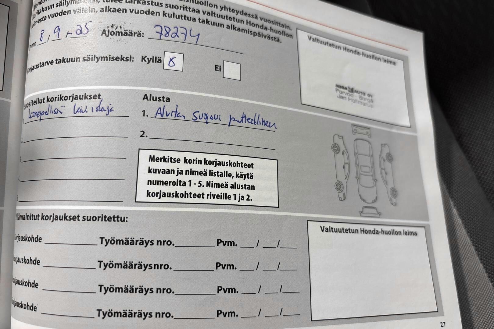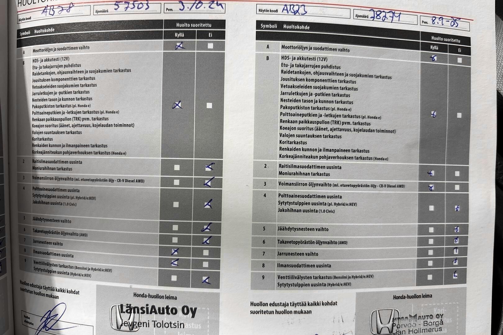 Viimeisin huolto tehty 78274km kohdalla 09/2025