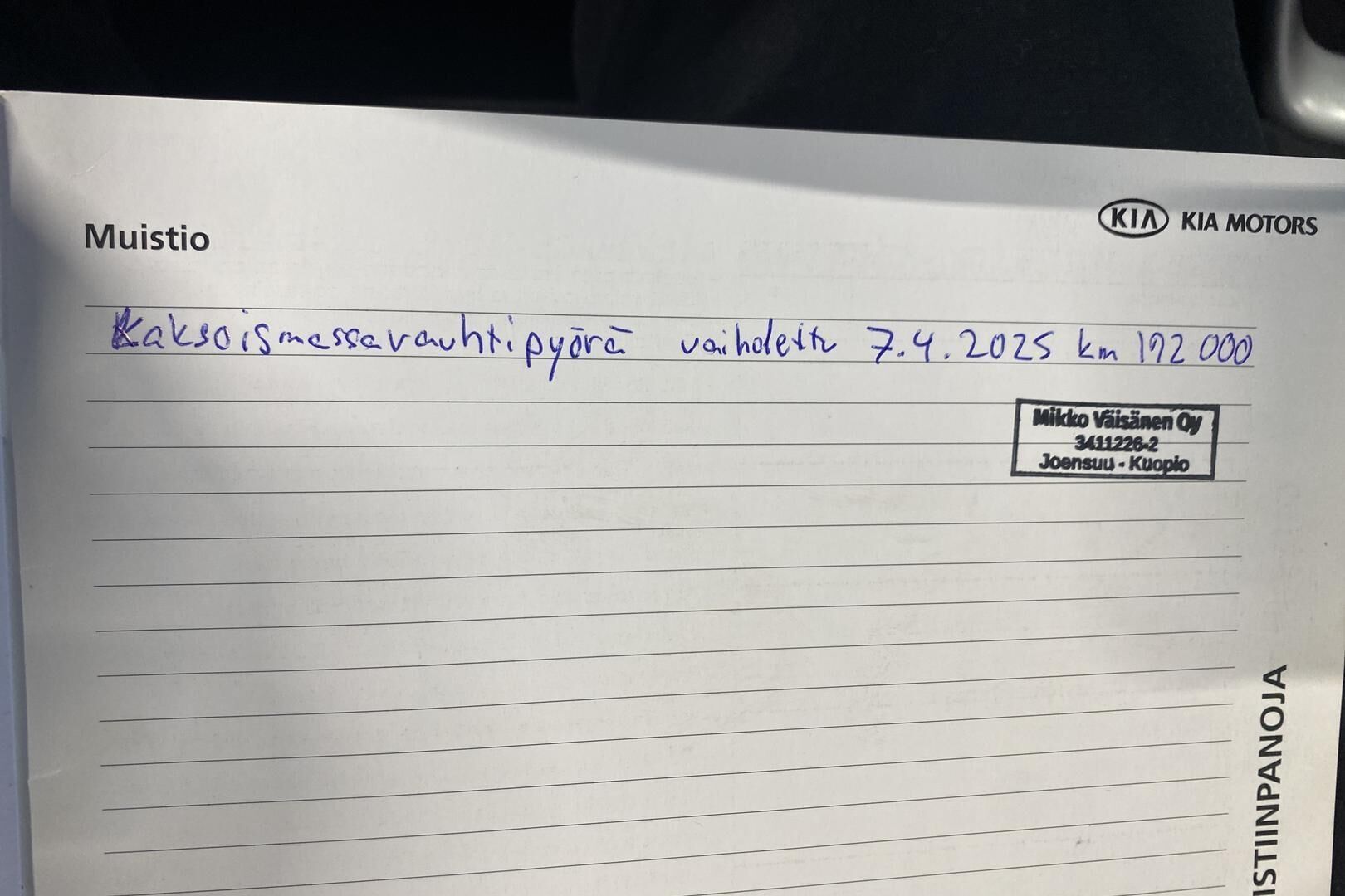 Viimeisin huolto tehty 10/2025