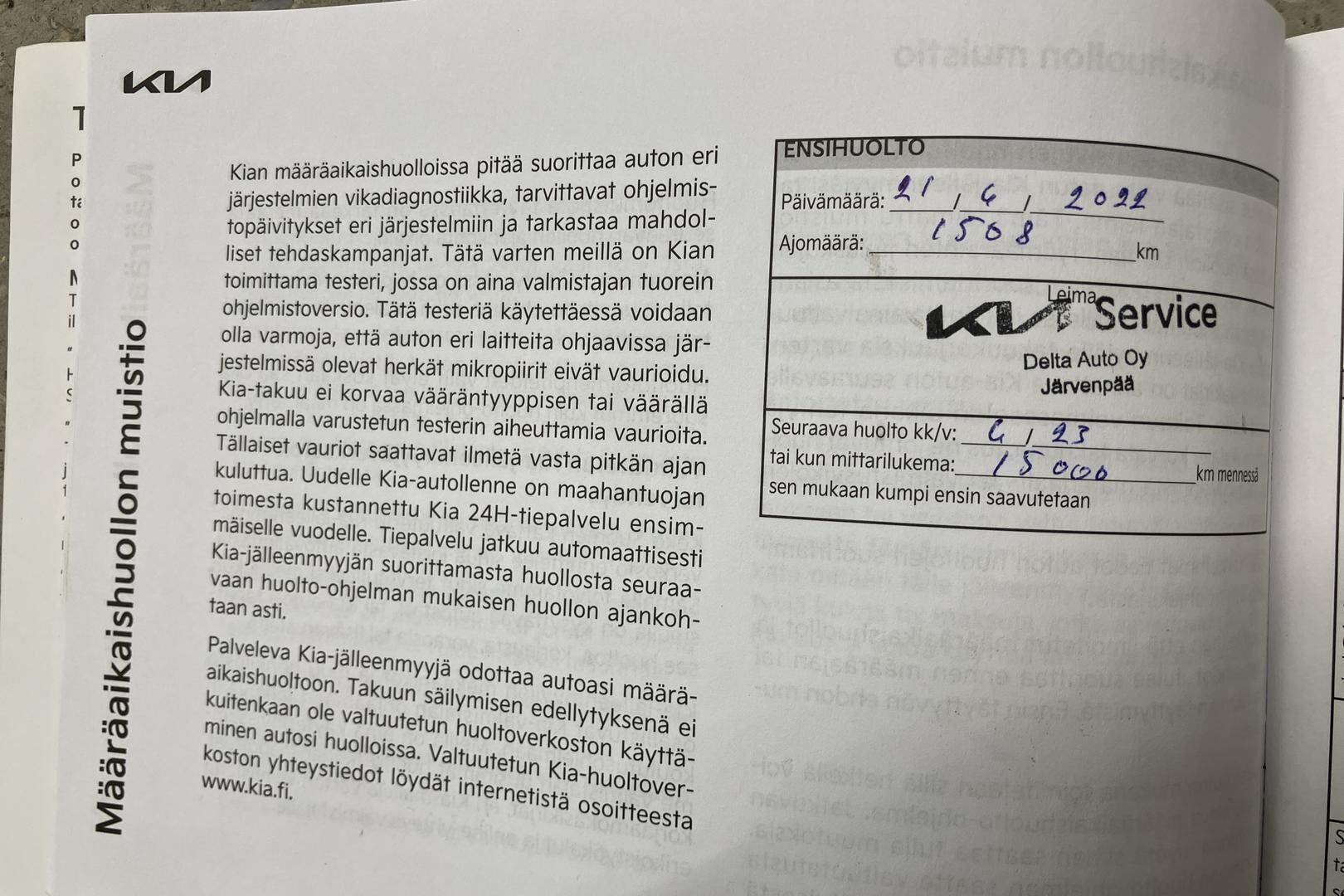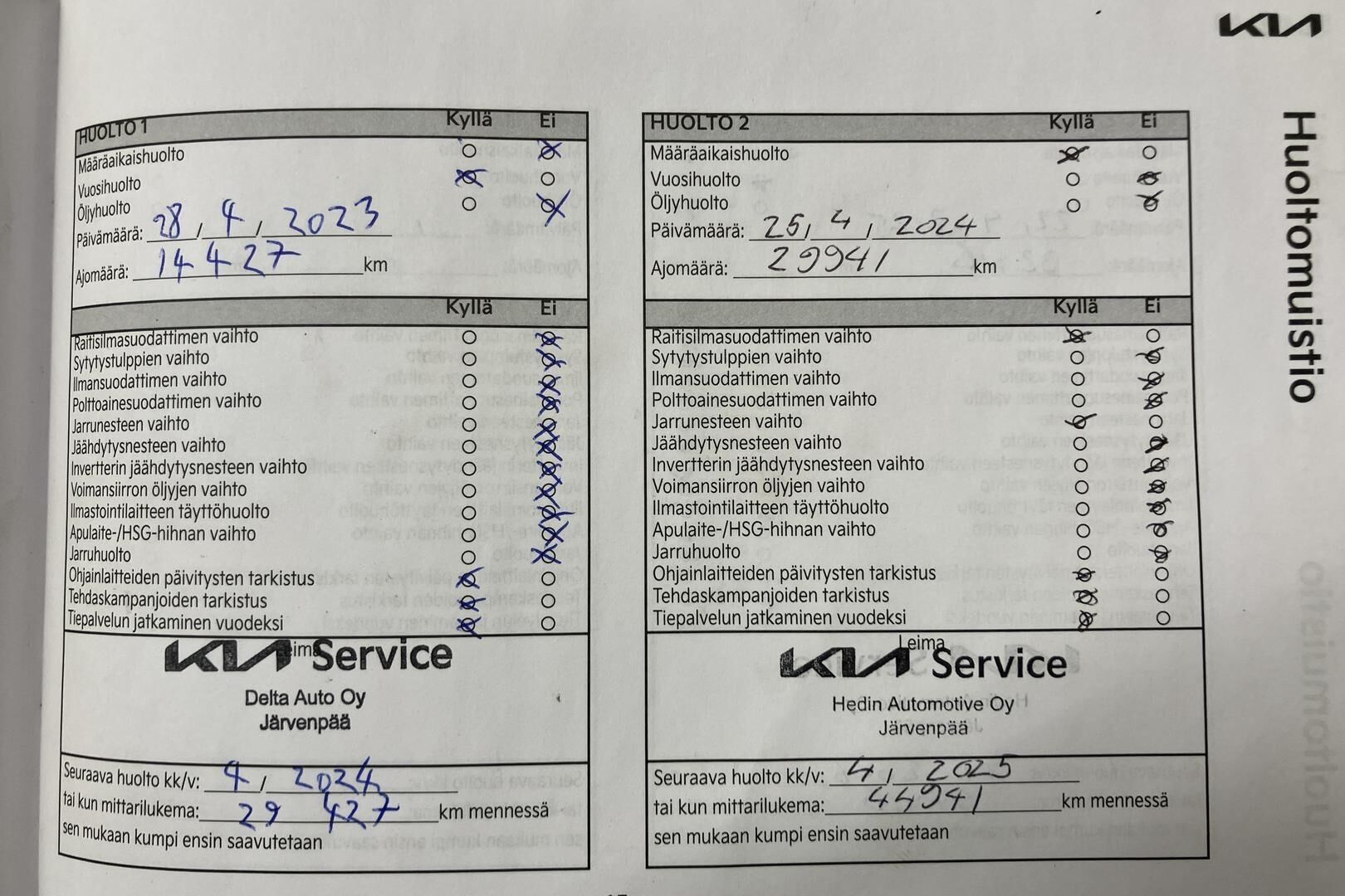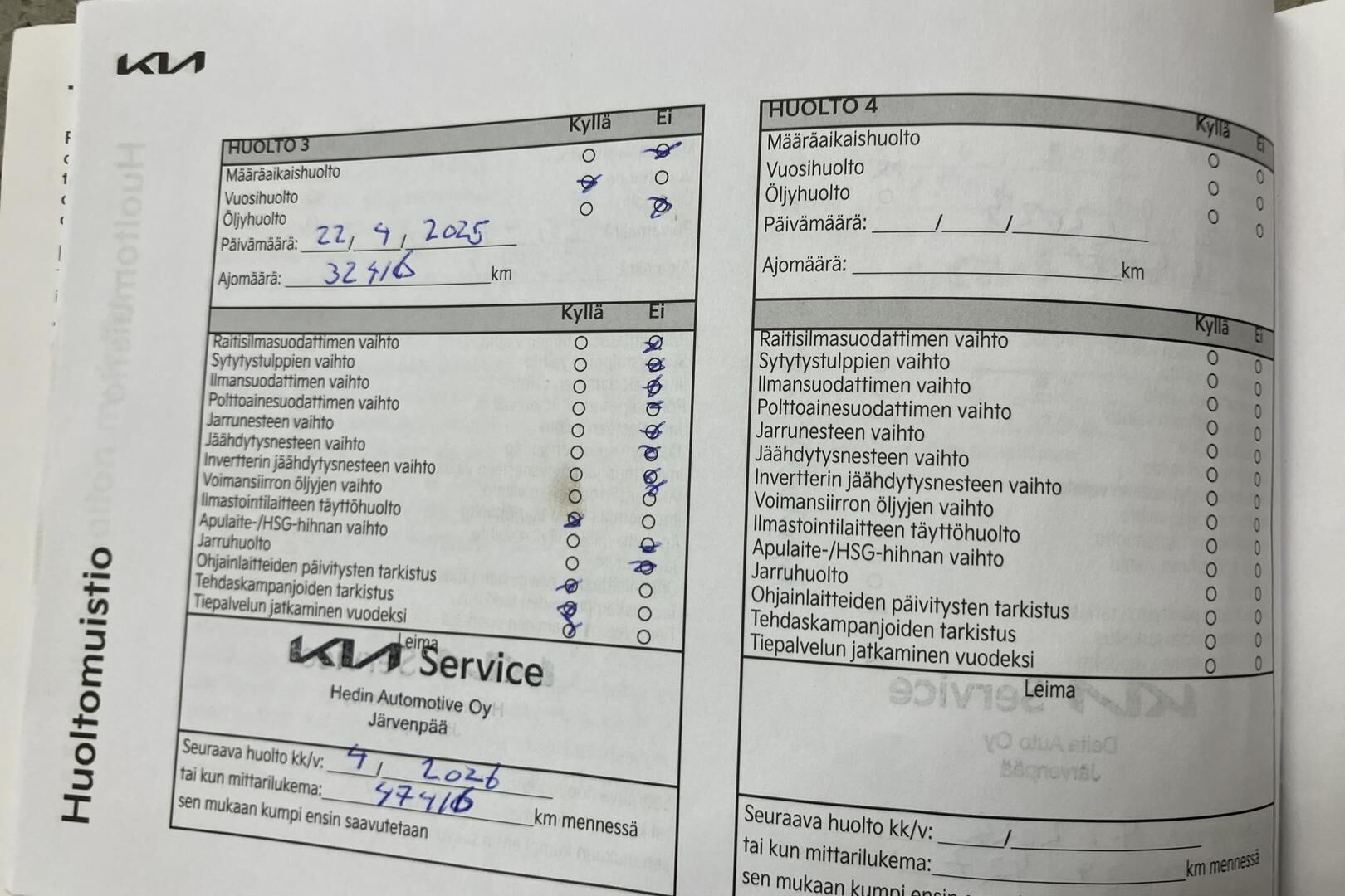 Viimeisin huolto tehty 04/2025 32.418km