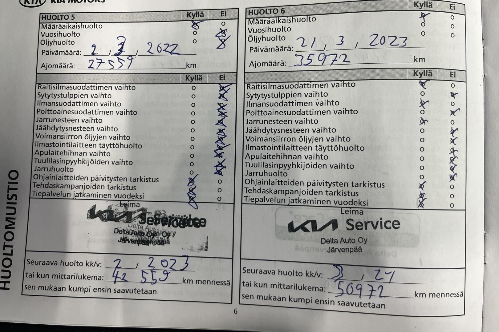 Viimeisin huolto tehty 03/2025