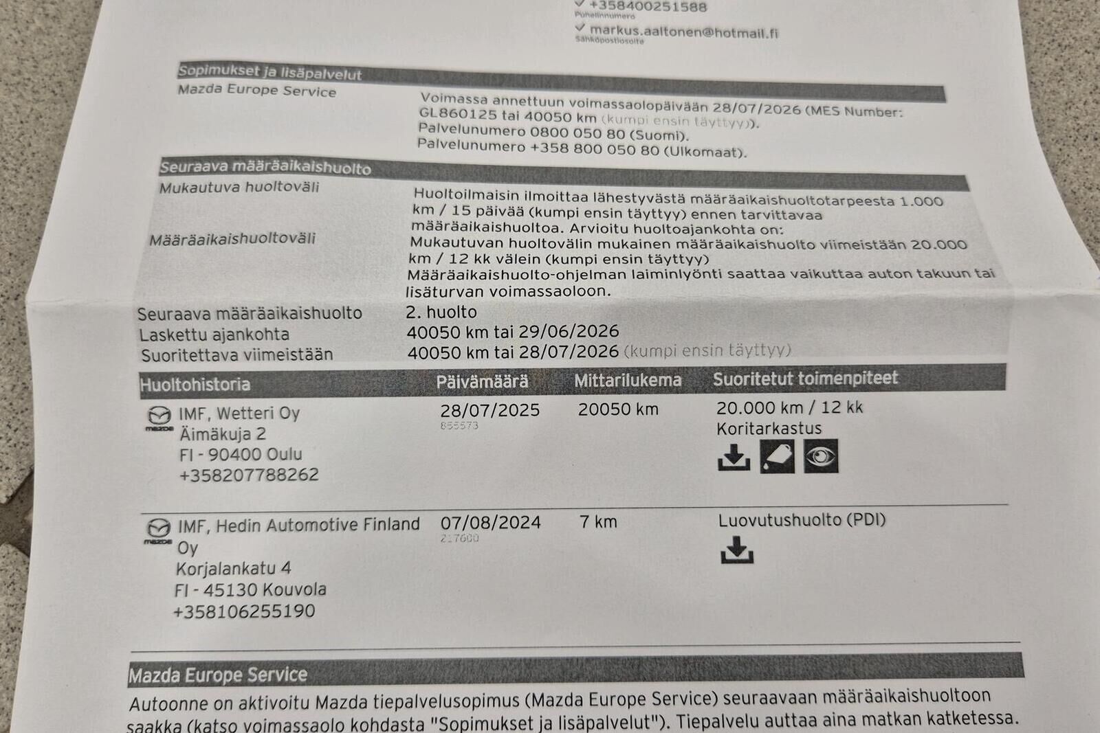 Viimeisin huolto tehty 07/2025 / 20050km
