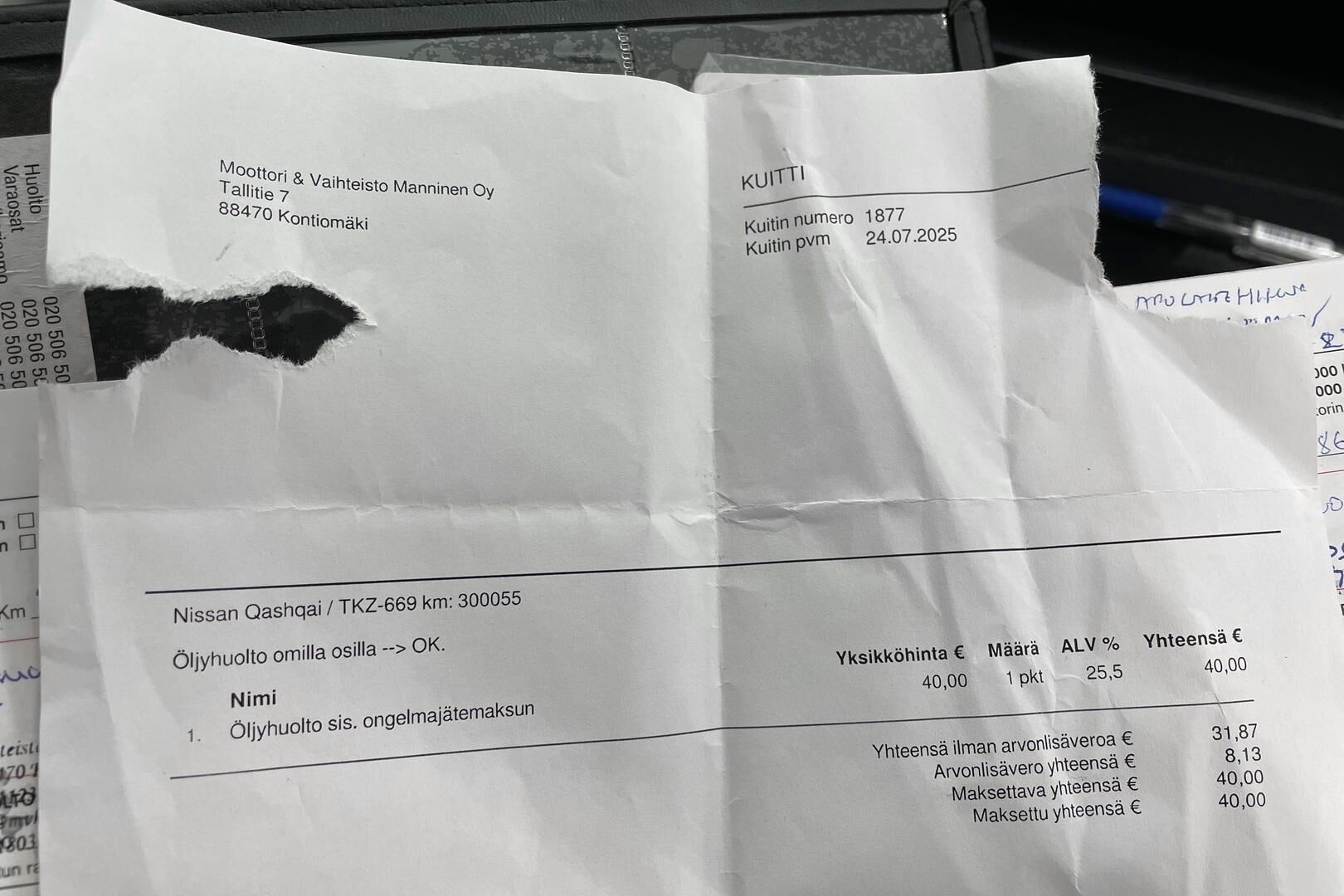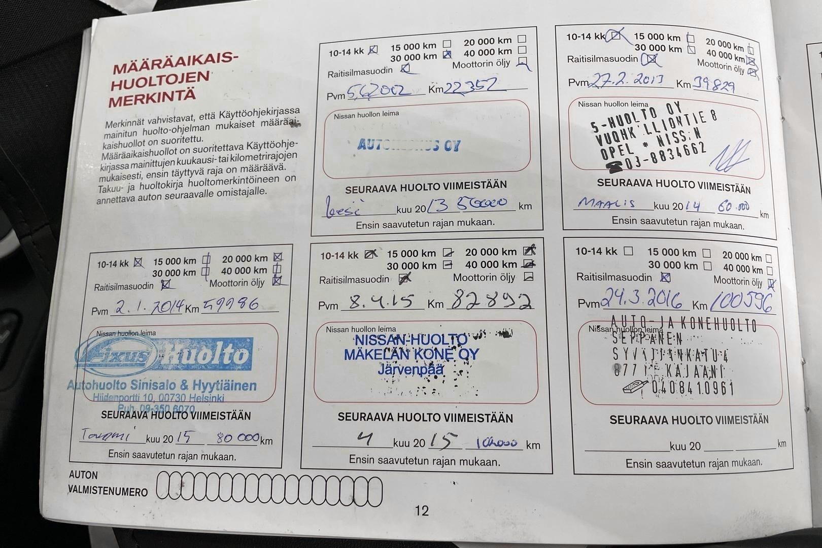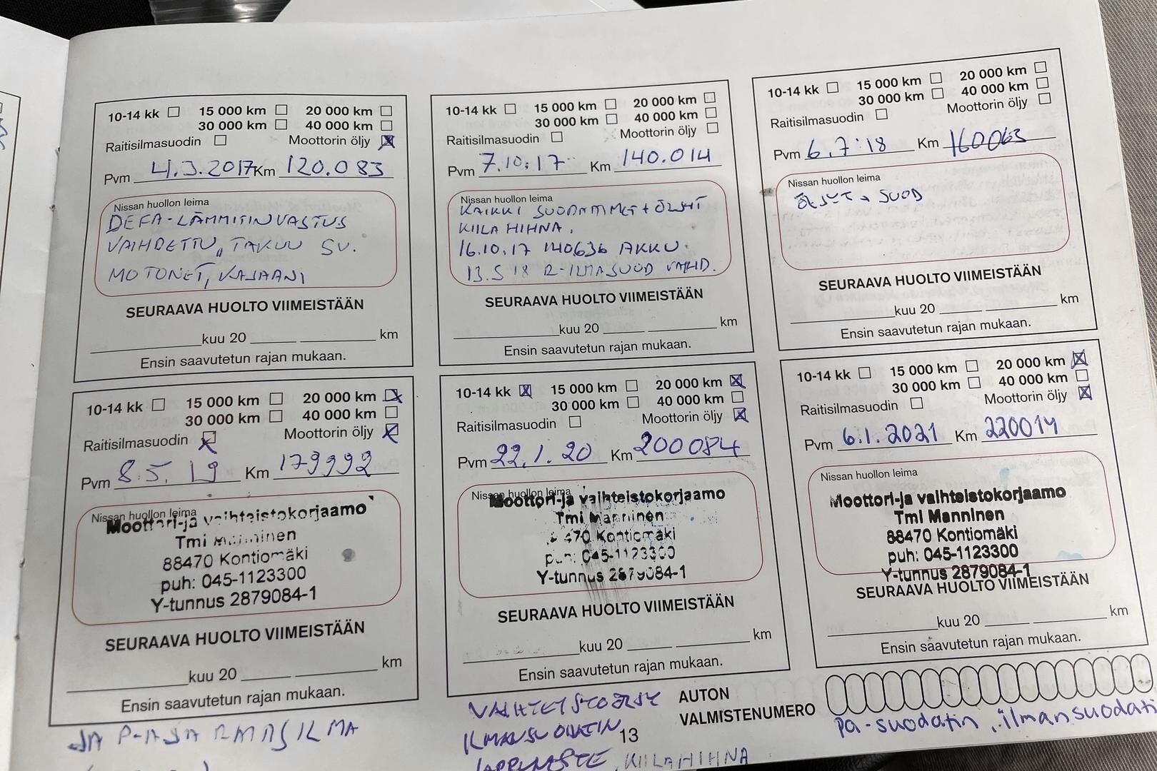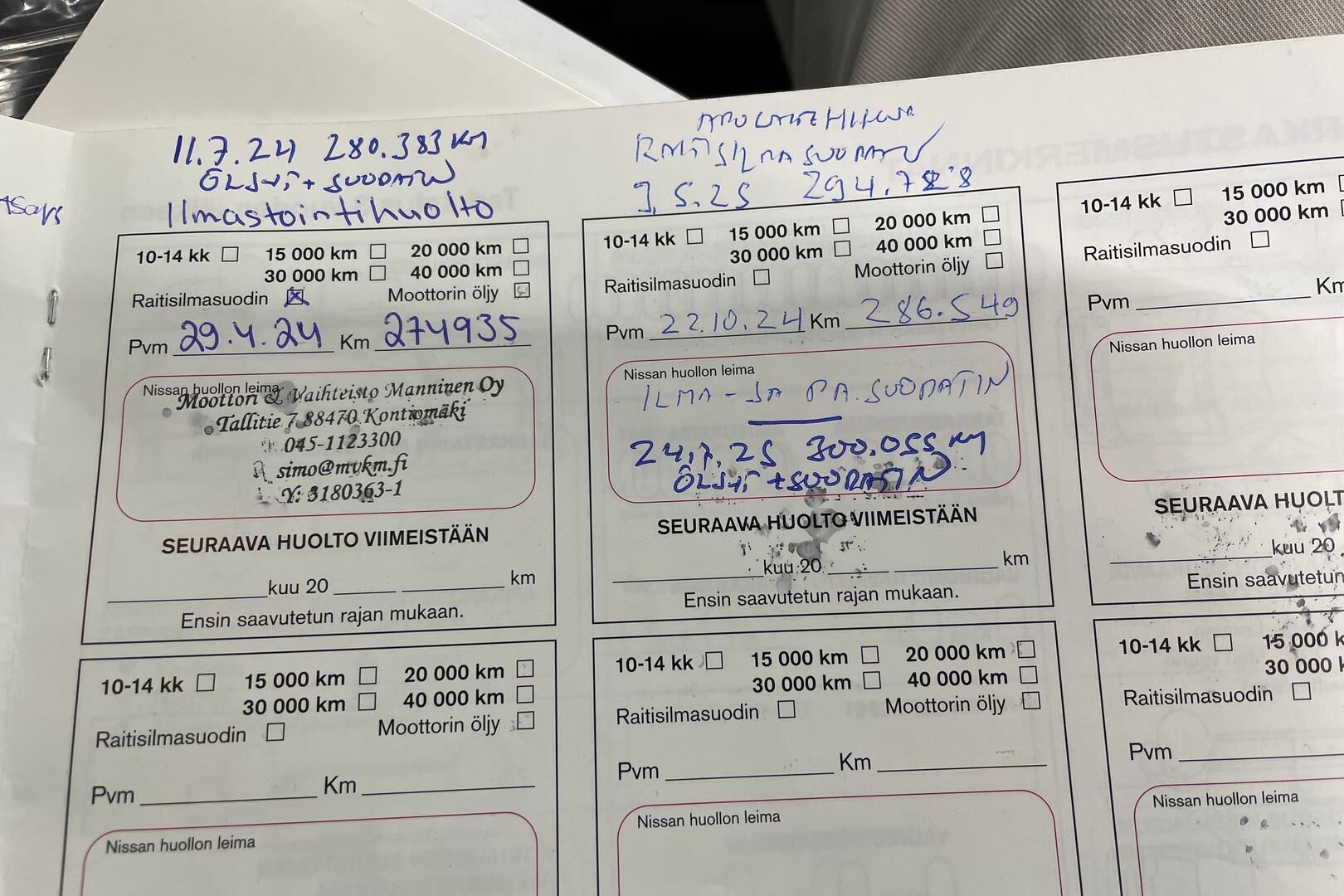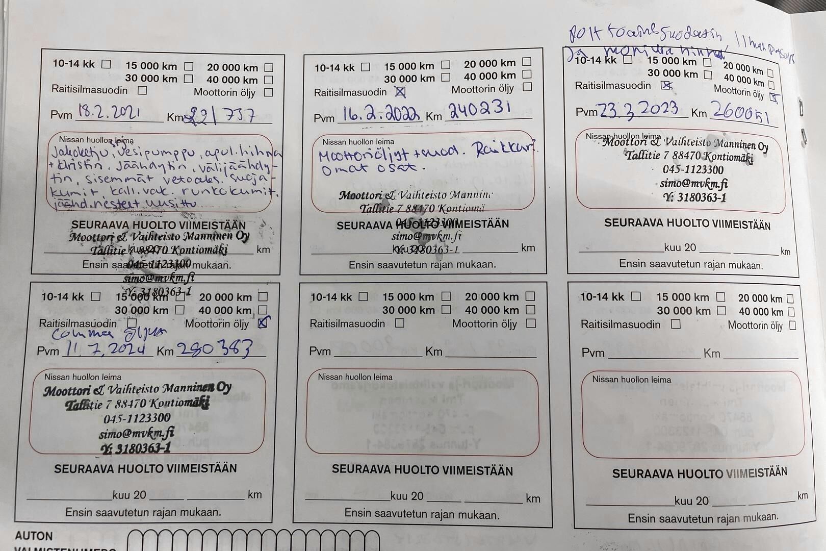 Viimeisin huolto tehty: km/pp.kk.vv