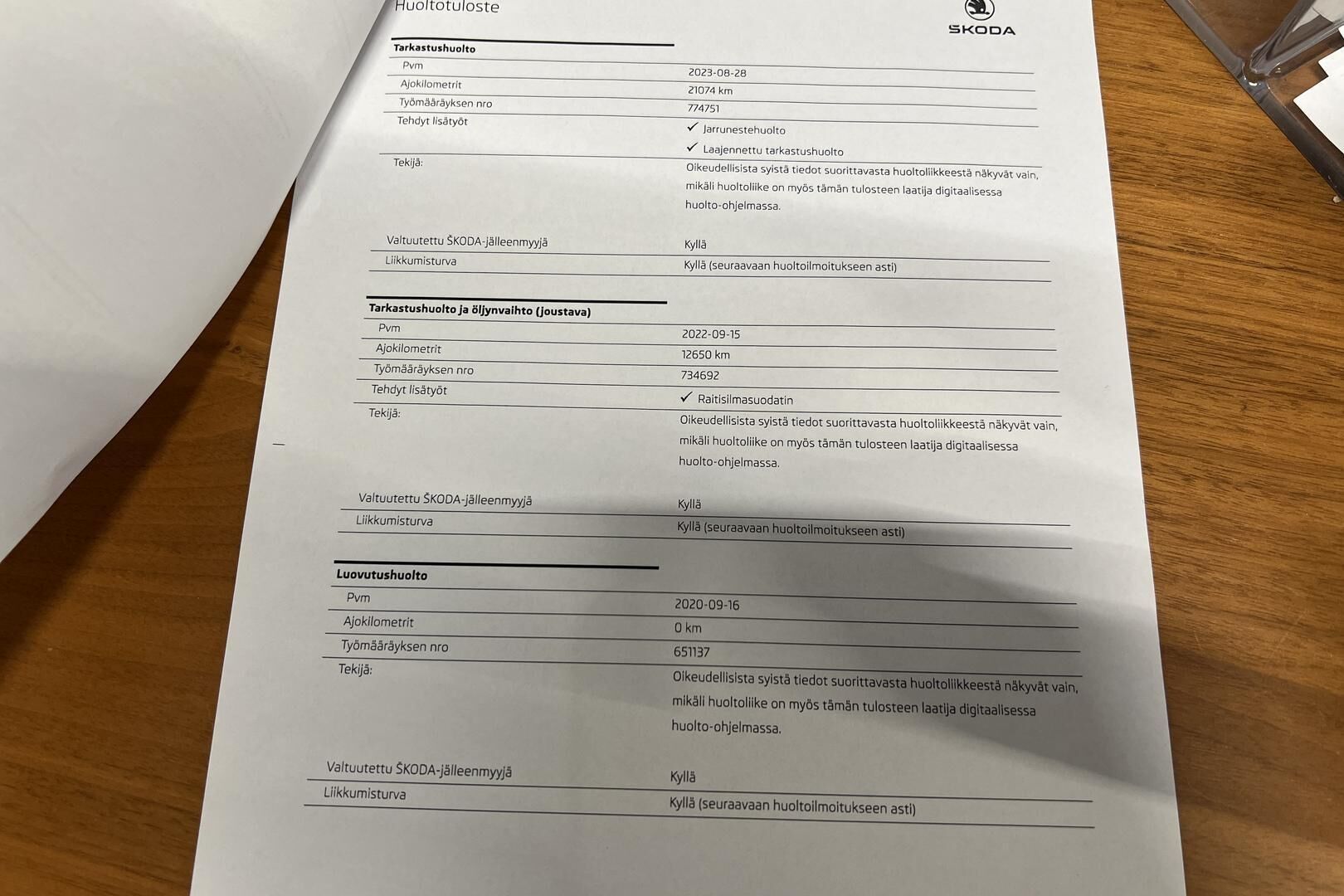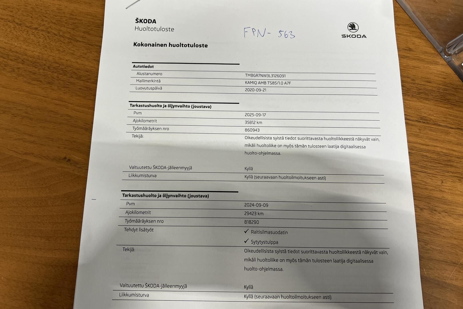 Viimeisin huolto tehty: 9/2025 / 35 tkm.