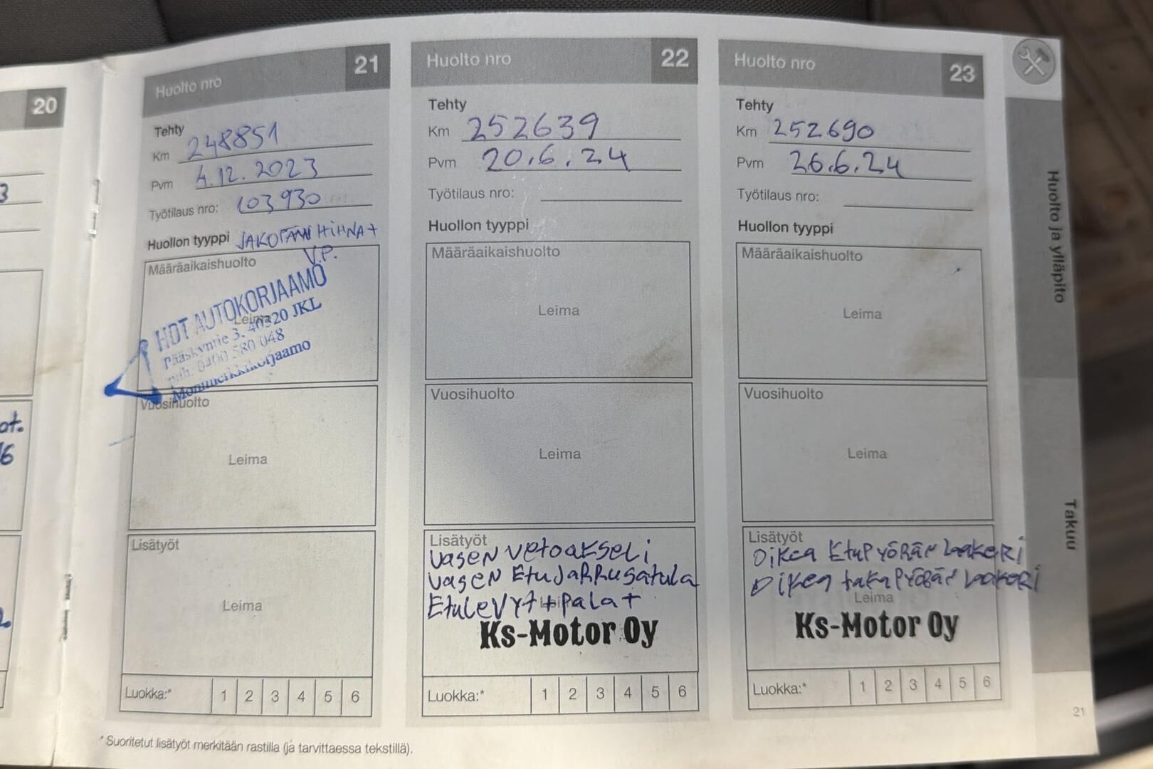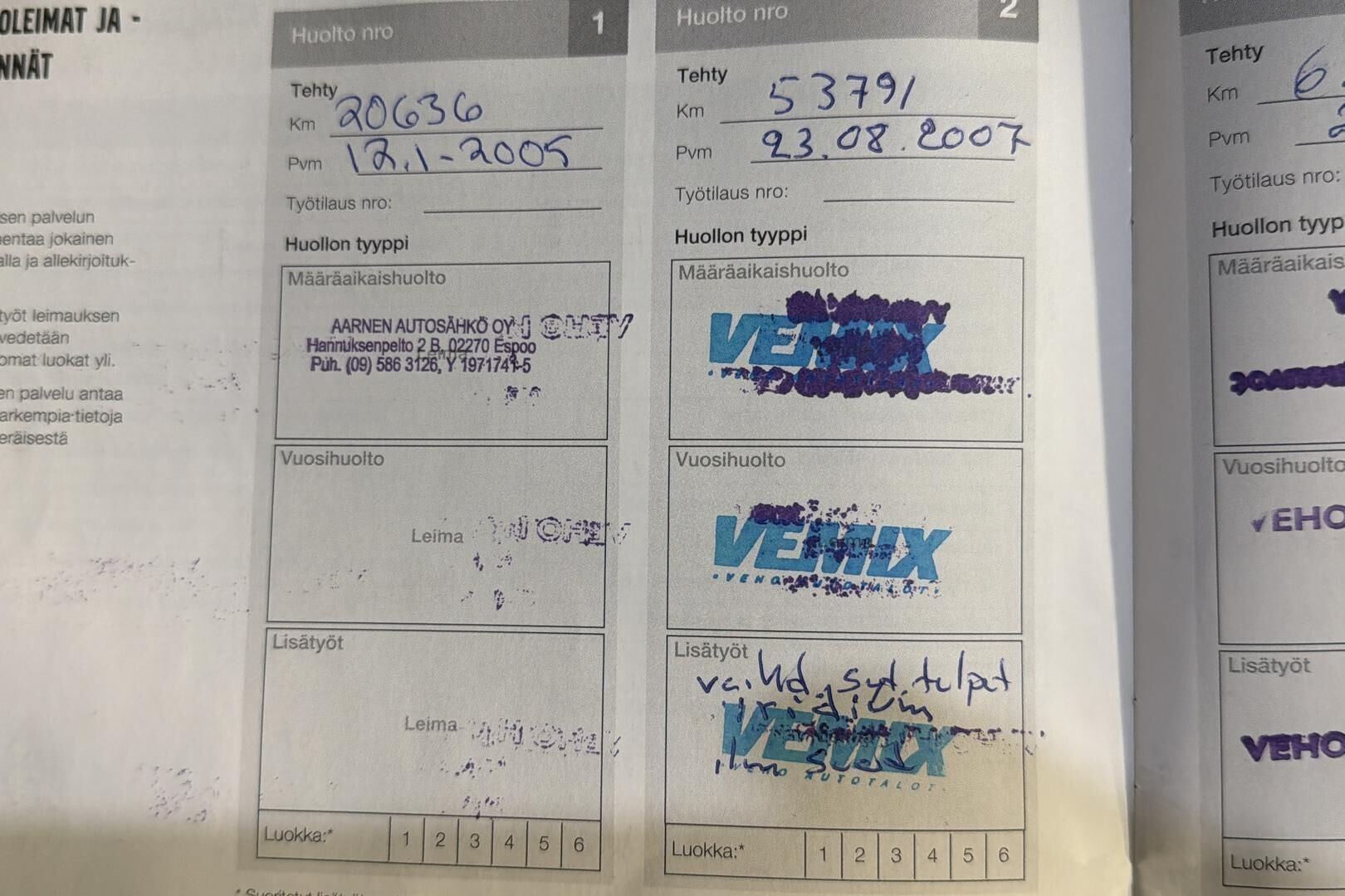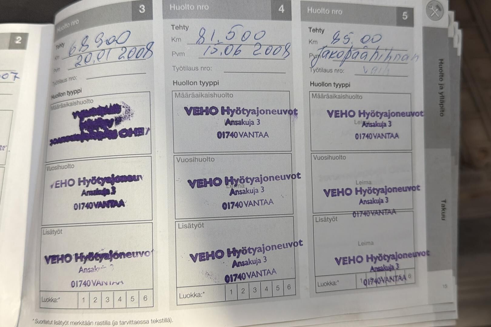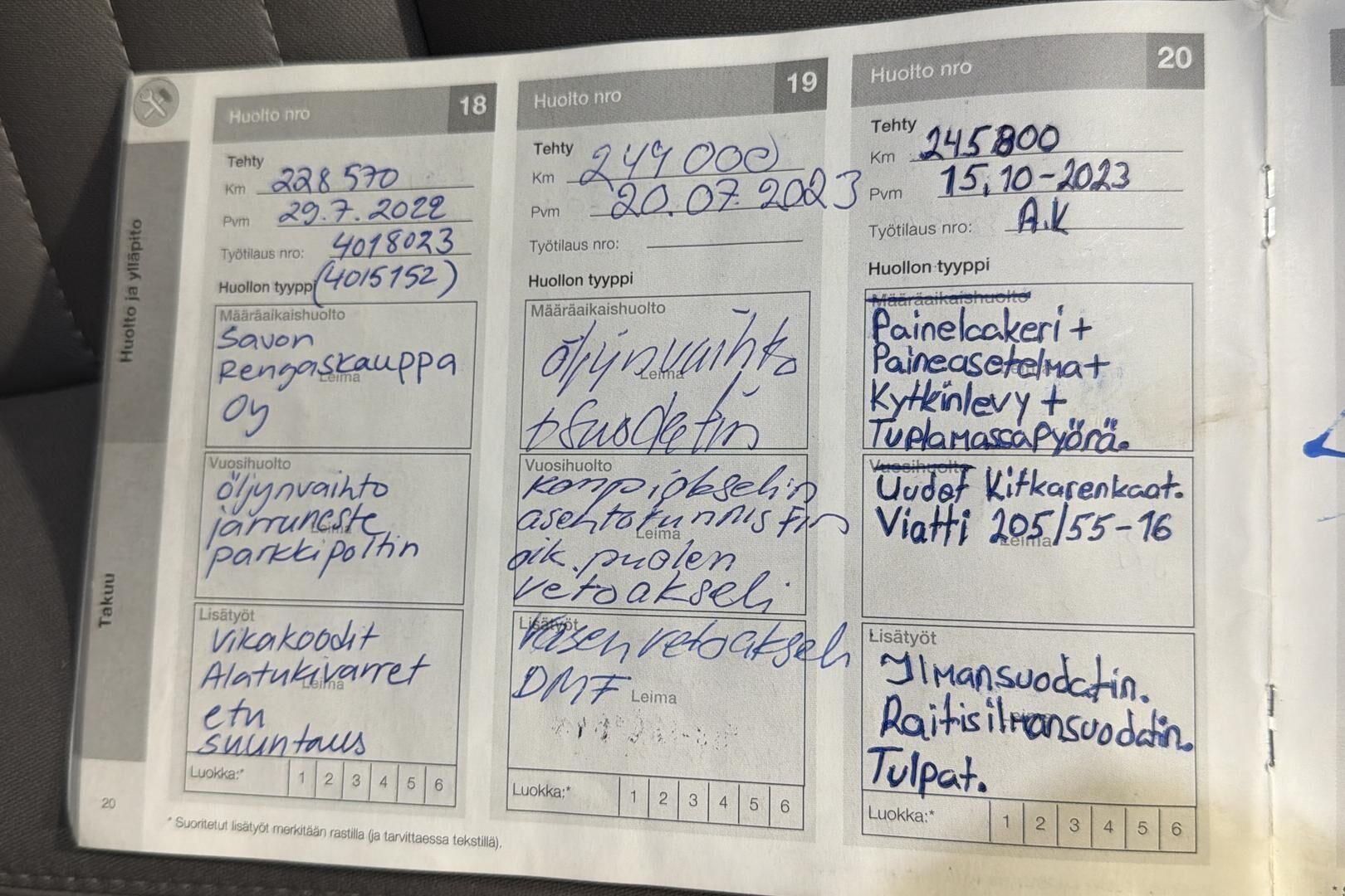 Viimeisin huolto tehty xx tkm kohdalla xx/20xx
