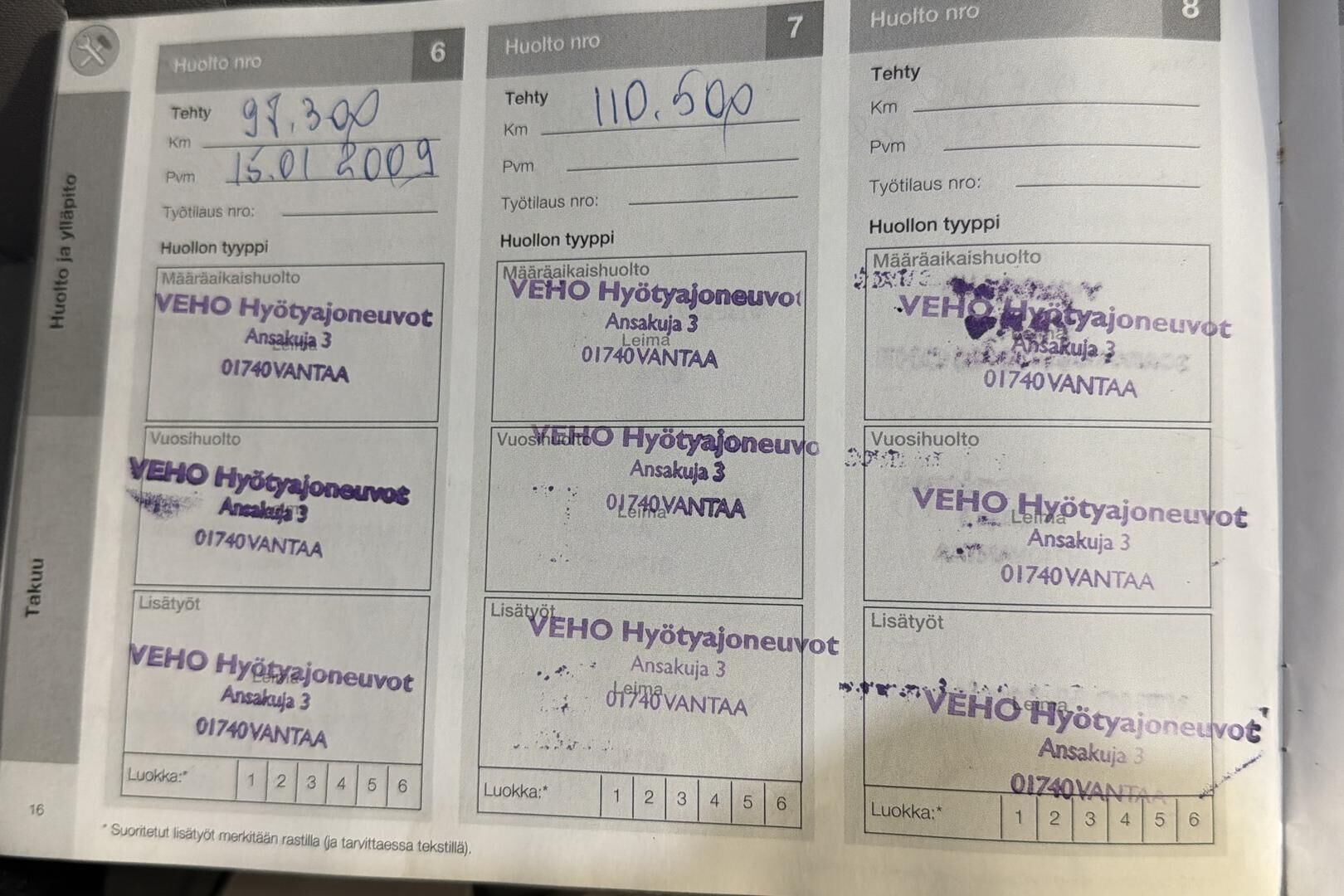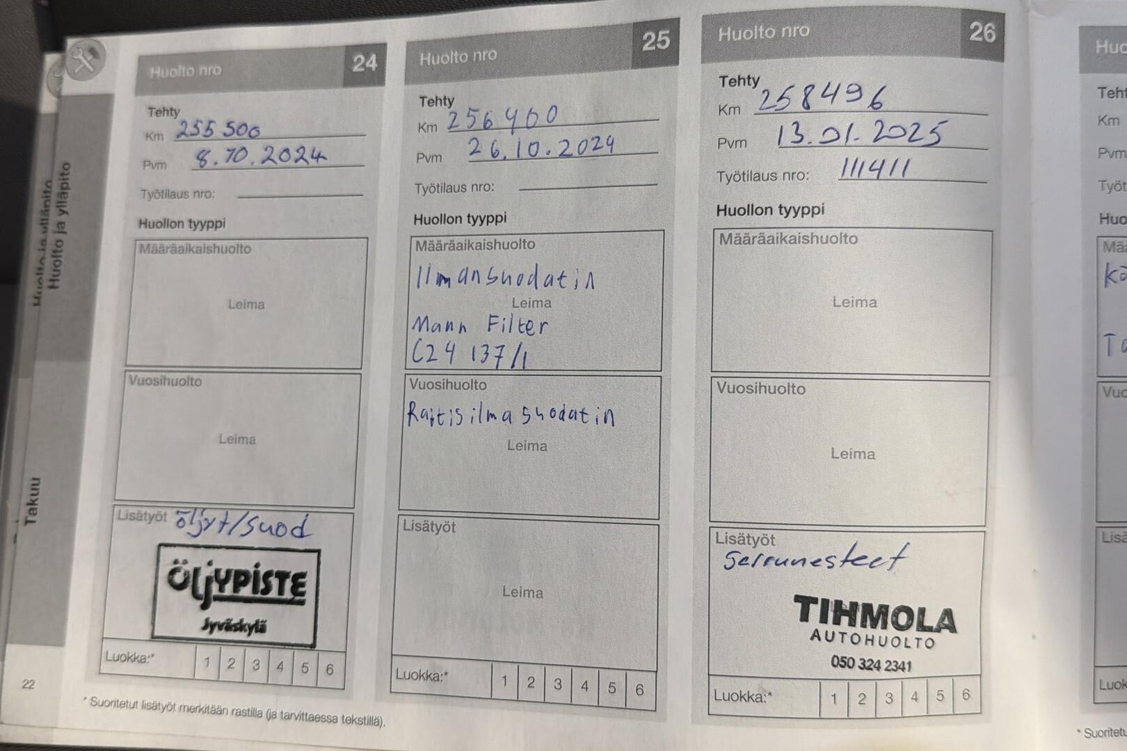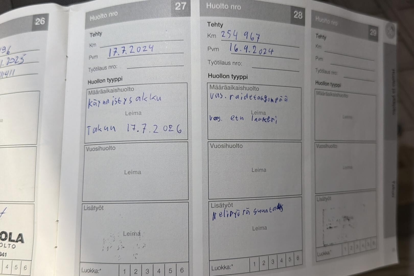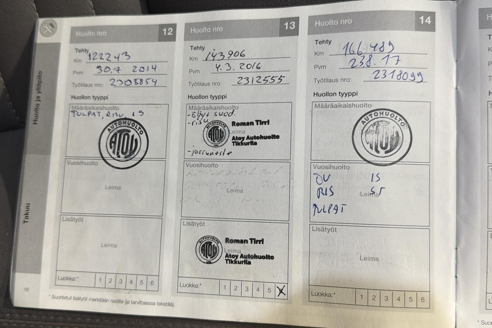 Viimeisin huolto tehty xx tkm kohdalla xx/20xx